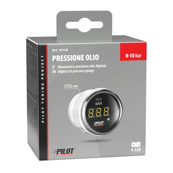 ΟΡΓΑΝΟ ΠΙΕΣΗΣ ΛΑΔΙΟΥ ΨΗΦΙΑΚΟ ΜΑΥΡΟ ΜΕ ΛΕΥΚΟ ΦΩΣ BLACK DIGITAL SERIES 9-32V 52mm