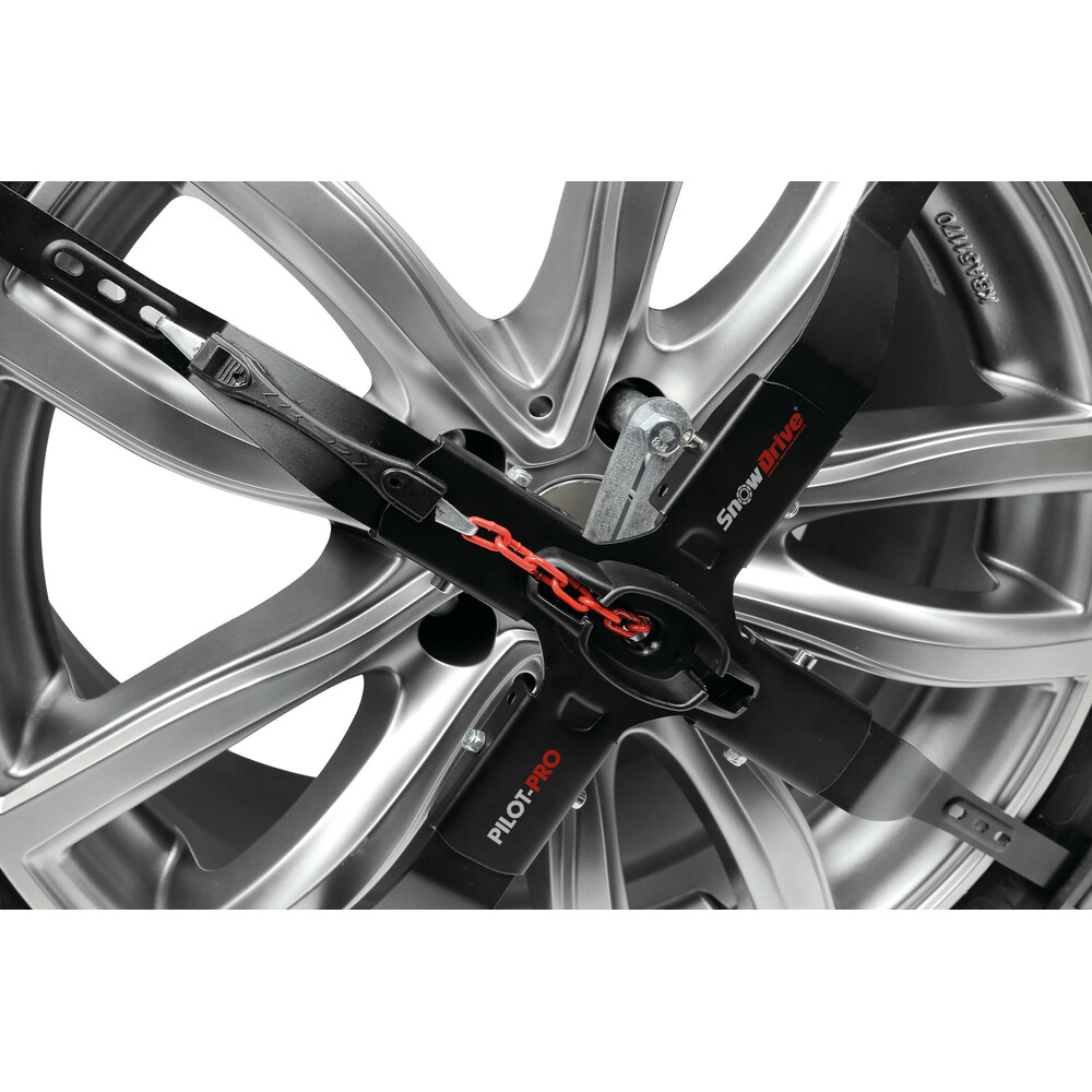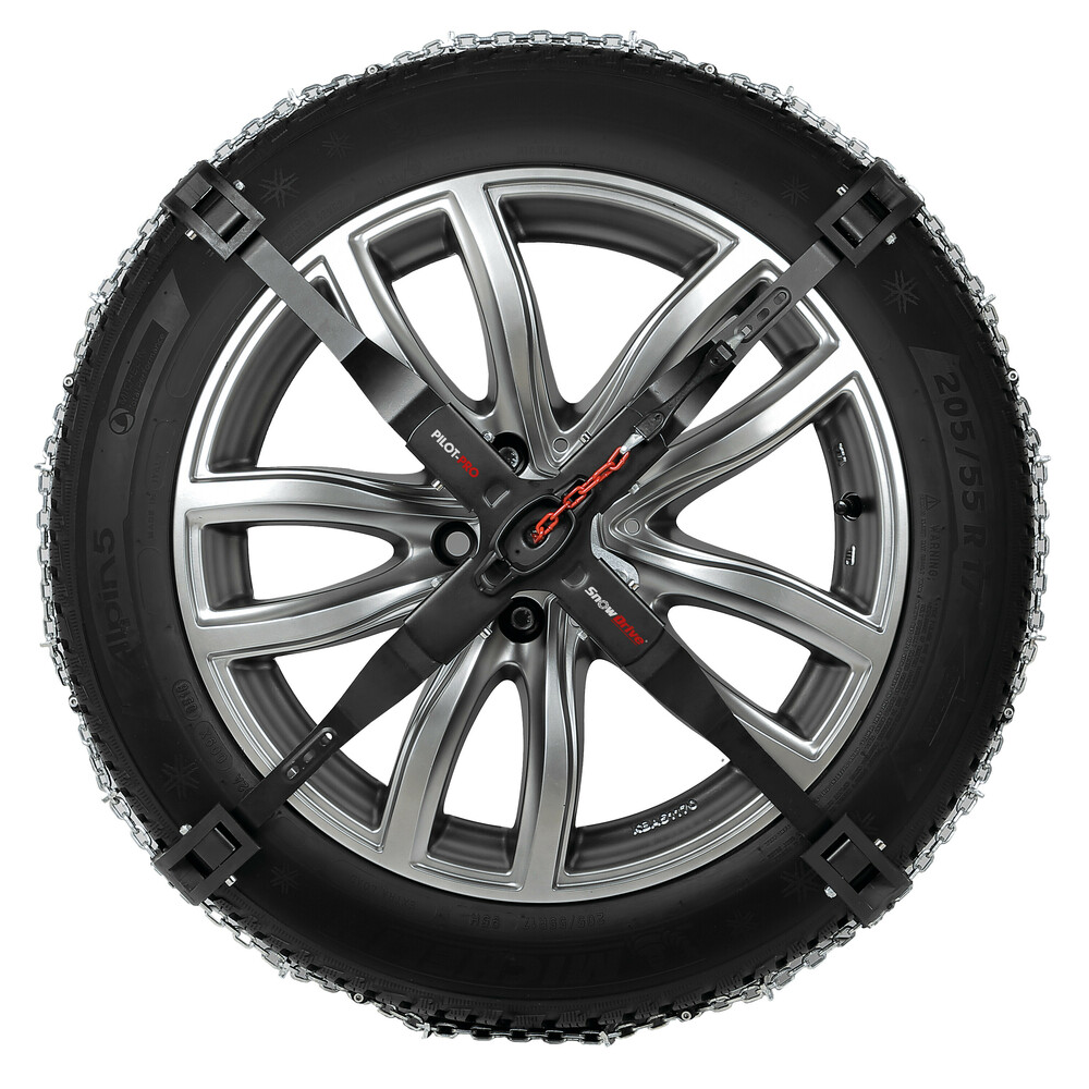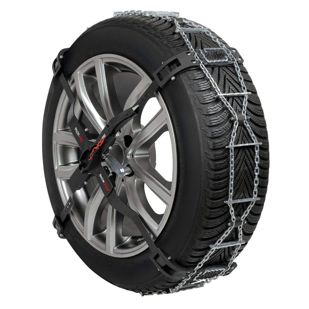 Αλυσίδες χιονιού της σειράς PILOT-PRO από την εταιρία Lampa, ιταλικής προέλευσης, κατασκευασμένες από ατσάλι μαγγανίου (σκληρυμένος χάλυβας) και επικάλυψη ειδικού πλαστικού σε όλα τα μέρη που έρχονται σε επαφή με την ζάντα για προστασία από χαράγματα, γρατζουνιές, εκδορές, κτλ. Συμμετρικό μοτίβο με λαβή συνδέσμων σε σχήμα "διαμάντι" για απόλυτη πρόσφυση (diamond pattern), εξοπλισμένες με 4 ειδικά σημεία, ενισχυμένα με θραύστες για να σπάνε τον πάγο κατά την κίνηση του τροχού, καθώς και ειδικούς εξωτερικούς συνδέσμους για πρόσθετη πρόσδεση και καλύτερο κράτημα για διαδρομές σε ειδικά εδάφη.