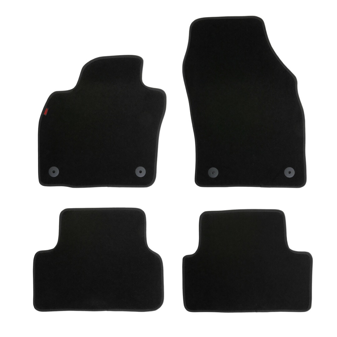 Πατάκια αυτοκινήτου από την εταιρία LAMPA, ιταλικής προέλευσης, κατασκευασμένα από υψηλής ποιότητας μοκέτα – 100% πολυπροπυλένιο – σε μαύρο χρώμα με περιμετρικό φινίρισμα από βελούρ ρέλι (απομίμηση βελούδου), σχεδιασμένα για να ταιριάζουν ακριβώς στις διαστάσεις του δαπέδου του εκάστοτε οχήματος – μαρκέ προϊόν. Είναι αδιάβροχα και διαθέτουν αντιολισθητικό πάτο ενισχυμένο με gel στο πίσω μέρος τους για καλύτερη πρόσφυση στο δάπεδο, καθώς και κουμπιά στερέωσης fix-points για όσα οχήματα είναι εξοπλισμένα με αντίστοιχες εργοστασιακές υποδοχές για να παραμένουν σταθερά στο πάτωμα της καμπίνας κατά την είσοδο/έξοδο των επιβατών.