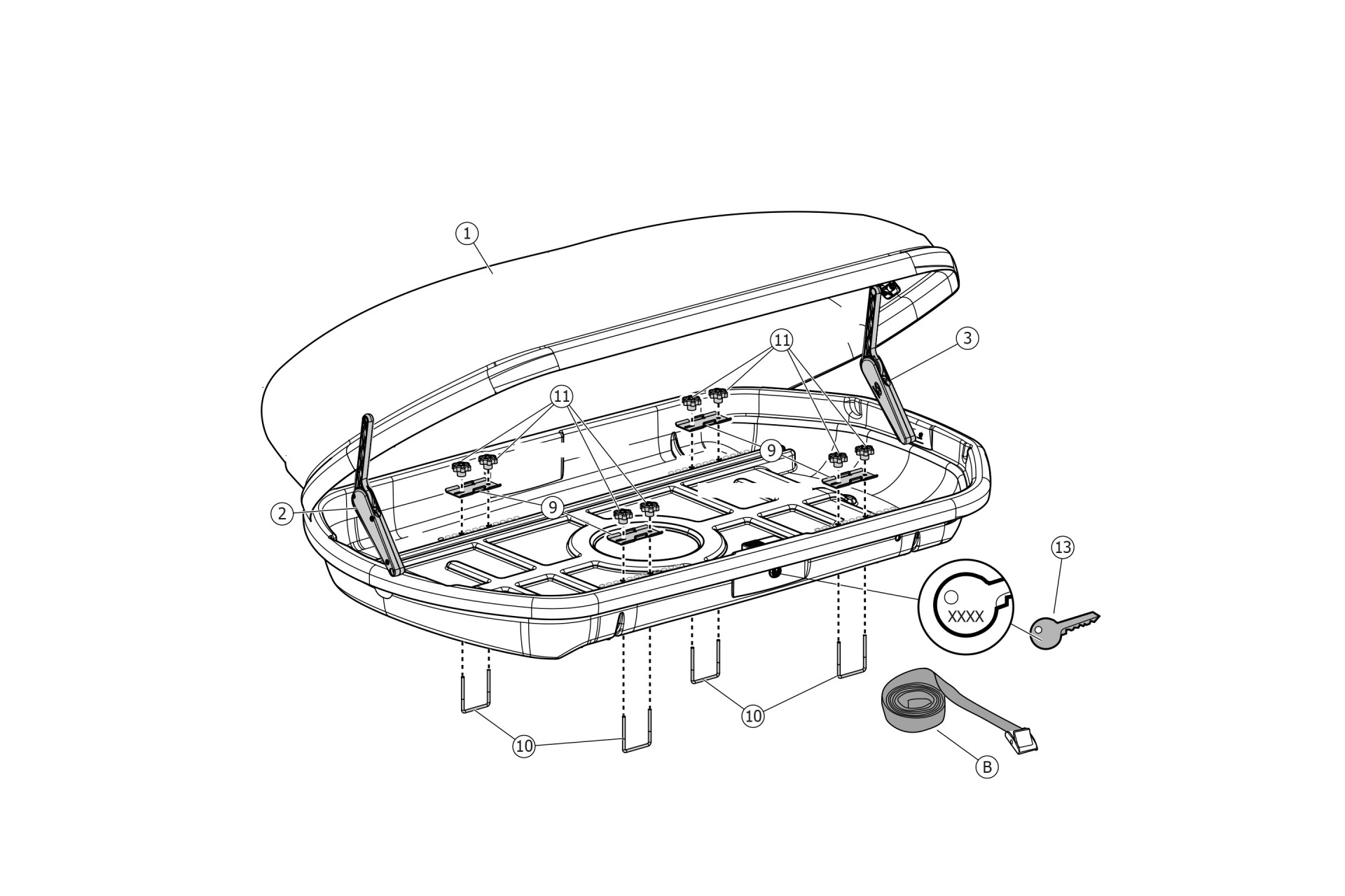 Προϊόν με κομψό και στρογγυλοποιημένο design, υψηλής αισθητικής, στο κάτω μέρος διαθέτει ειδικές αναμονές, οι οποίες εφαρμόζουν επάνω στις μπάρες για καλύτερη πρόσφυση και τοποθέτηση. Είναι εξοπλισμένη με αντικλεπτικό σύστημα ασφαλείας και αεροτομή στο πίσω μέρος για να μπορεί να επιτευχθεί καλύτερη απόδοση στην αεροδυναμική της αντίσταση. Στο εσωτερικό της έχει αναμονές για τη στερέωση των ιμάντων πρόσδεσης φορτίου, προσφέροντας έτσι ασφάλεια στα μεταφερόμενα είδη.