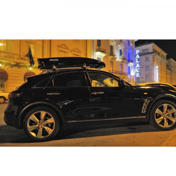 Μπαγκαζιέρα οροφής της σειράς MANIA από την εταιρία MENABO, 100% ιταλικής προέλευσης και κατασκευής από υψηλής ποιότητας ABS ανθεκτικό πλαστικό σε μαύρο χρώμα με γυαλιστερή υφή και χωρητικότητα φορτίου 320 lt. Ιδανική επιλογή για τη δημιουργία επιπρόσθετου αποθηκευτικού χώρου κατά τη διάρκεια ταξιδιού ή και για μεταφορές εντός πόλης, ώστε να έχετε τον απαραίτητο εξοπλισμό σας πάντα μαζί!