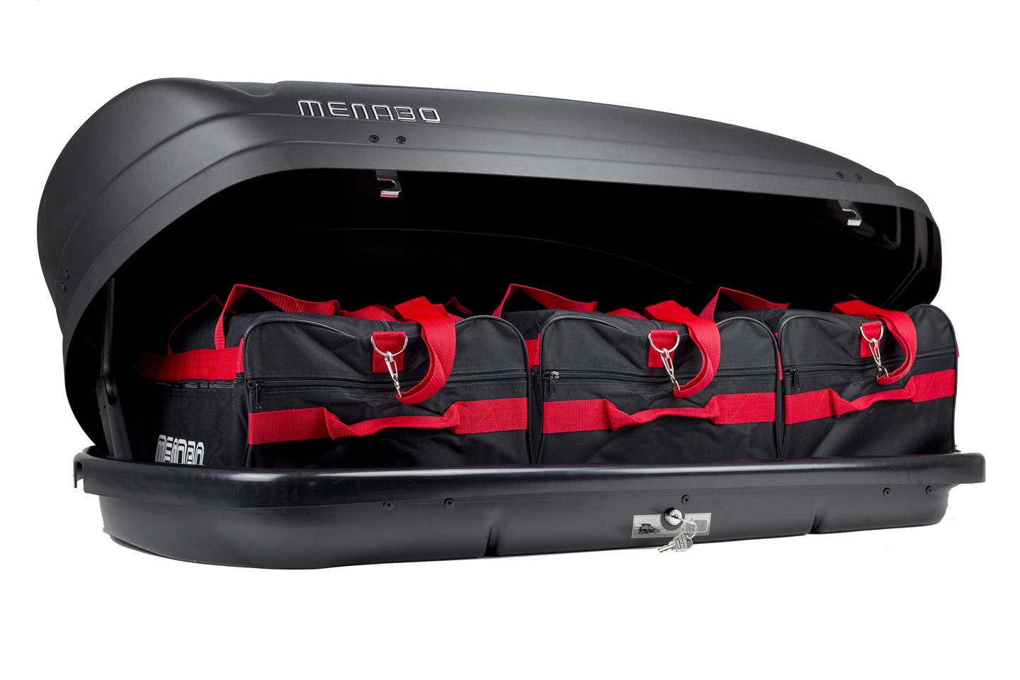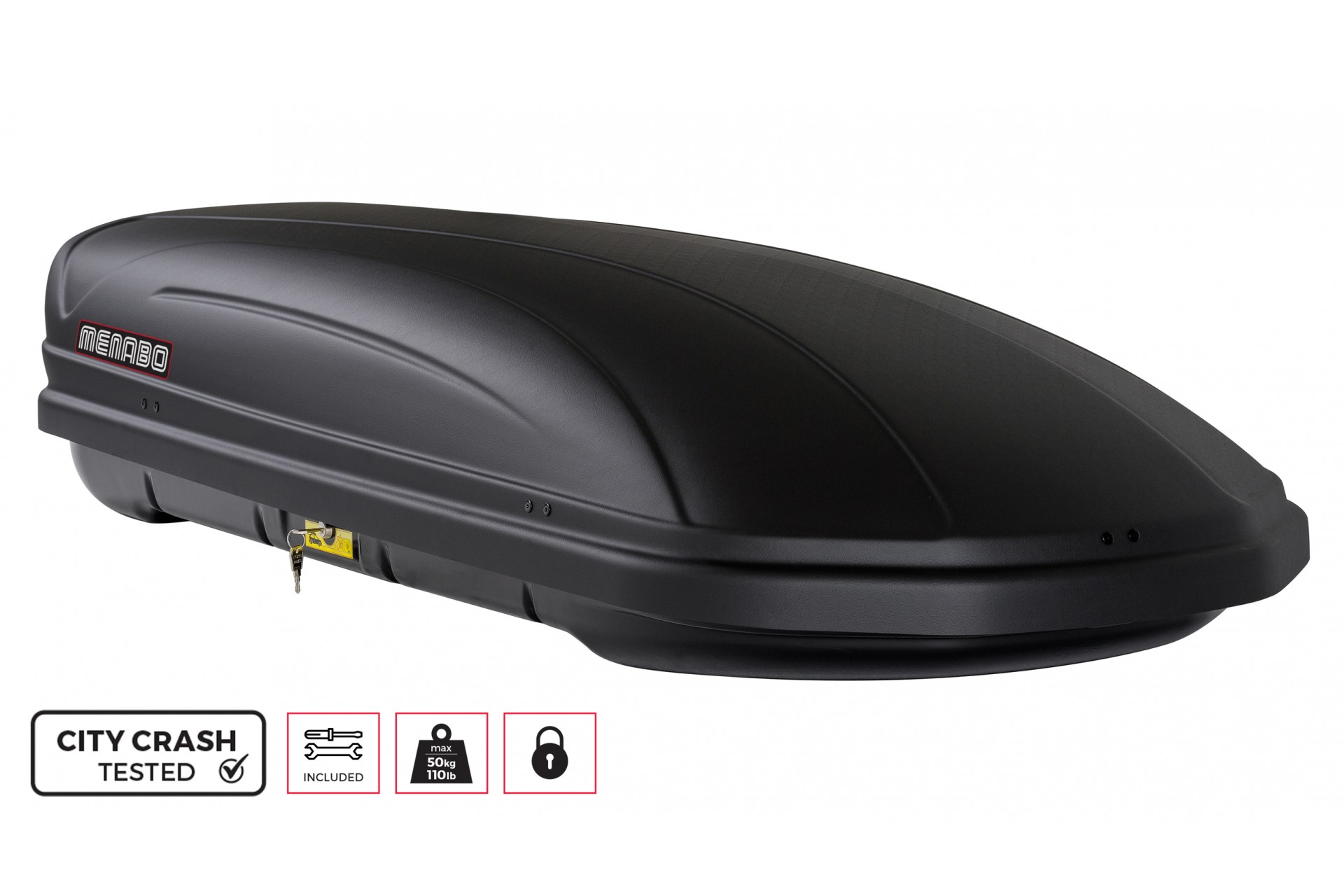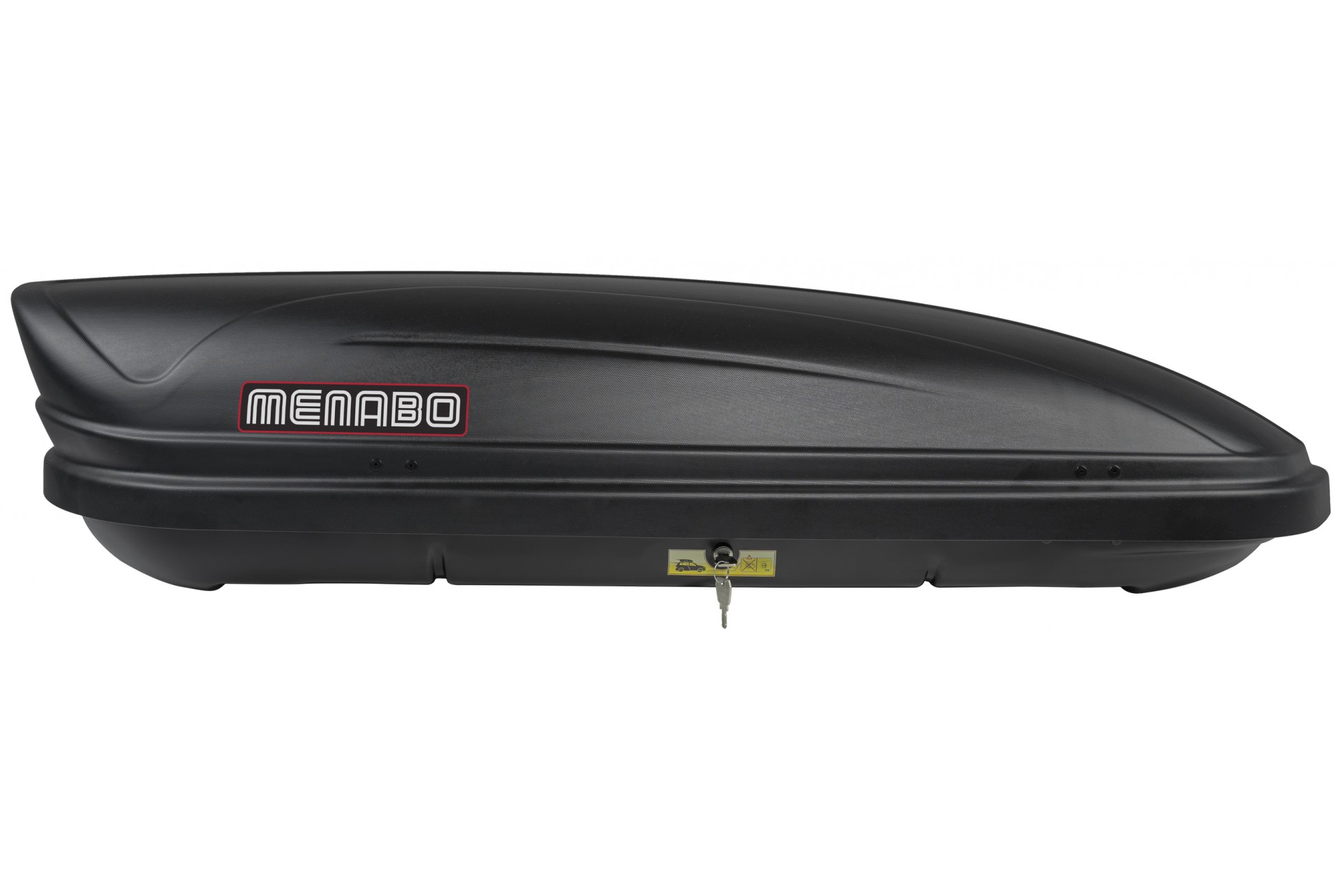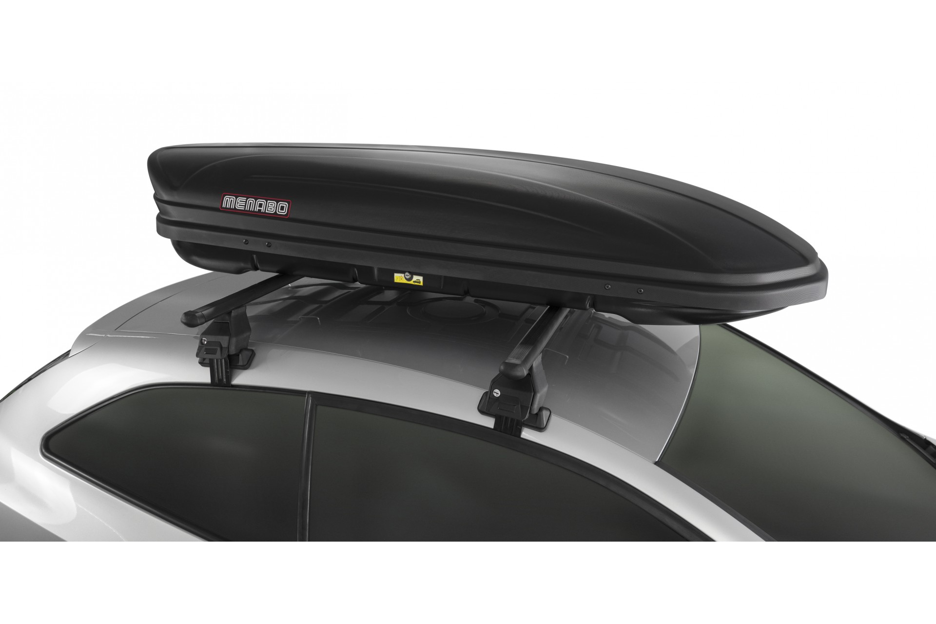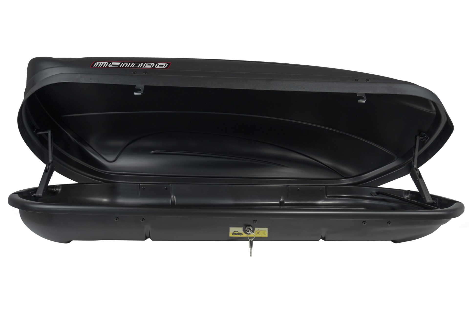 Μπαγκαζιέρα οροφής της σειράς MARATHON από την εταιρία MENABO, 100% ιταλικής προέλευσης και κατασκευής από υψηλής ποιότητας ABS πλαστικό σε μαύρο χρώμα με ματ, ανάγλυφη υφή. Ένα προϊόν υψηλής αισθητικής, που διαθέτει: